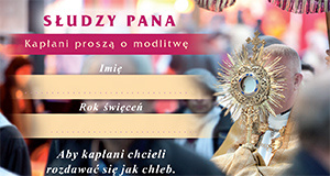 W tym roku pragniemy kontynuować akcję środowiska stronywww.kapłani.com.pl „Słudzy Pana. Kapłani proszą o modlitwę”. Jej celem jest modlitwa za kapłanów jako wyraz wspólnej odpowiedzialności za dobro Kościoła. Akcja będzie miała miejsce w Wielki Czwartek (6 kwietnia 2017), a udział w niej będzie zaproszeniem do podjęcia modlitwy za tych, których Chrystus wybrał i nazwał swoimi przyjaciółmi. Propozycja owego przedsięwzięcia dotyczy parafii z całej Polski oraz polskich parafii z innych krajów.