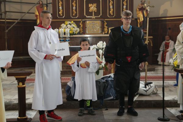 Mszy Świętej przewodniczył Diecezjalny Duszpasterz - ks. Piotr Belecki. Homilę natomiast wygłosił ks. Krzysztof Szerszeń wraz z dwom Diakonami - Maciejem i Szymonem. Nie byłoby w tym nic dziwnego, gdyby nie fakt, że do kazania użyli bardzo niecodziennego rekwizytu - stroju bramkarza hokejowego. Dzięki temu szczególnie młodsza część uczestników bardzo aktywnie uczestniczyła w homilii.