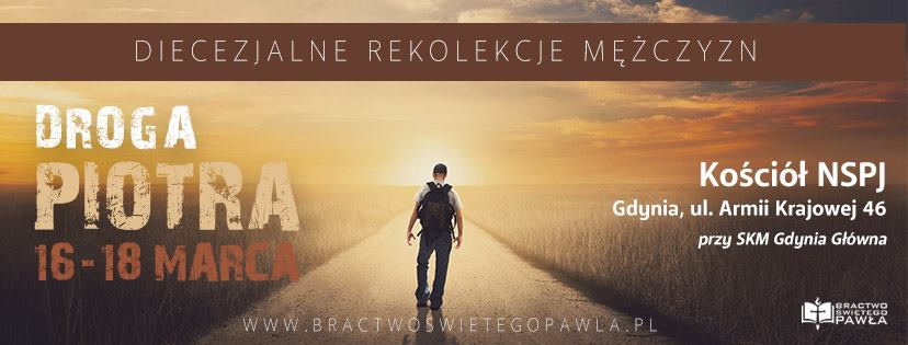 Zapraszamy na diecezjalne rekolekcje mężczyzn "Droga Piotra" organizowane przez Bractwo św. Pawła, męską formację katolicką archidiecezji gdańskiej.