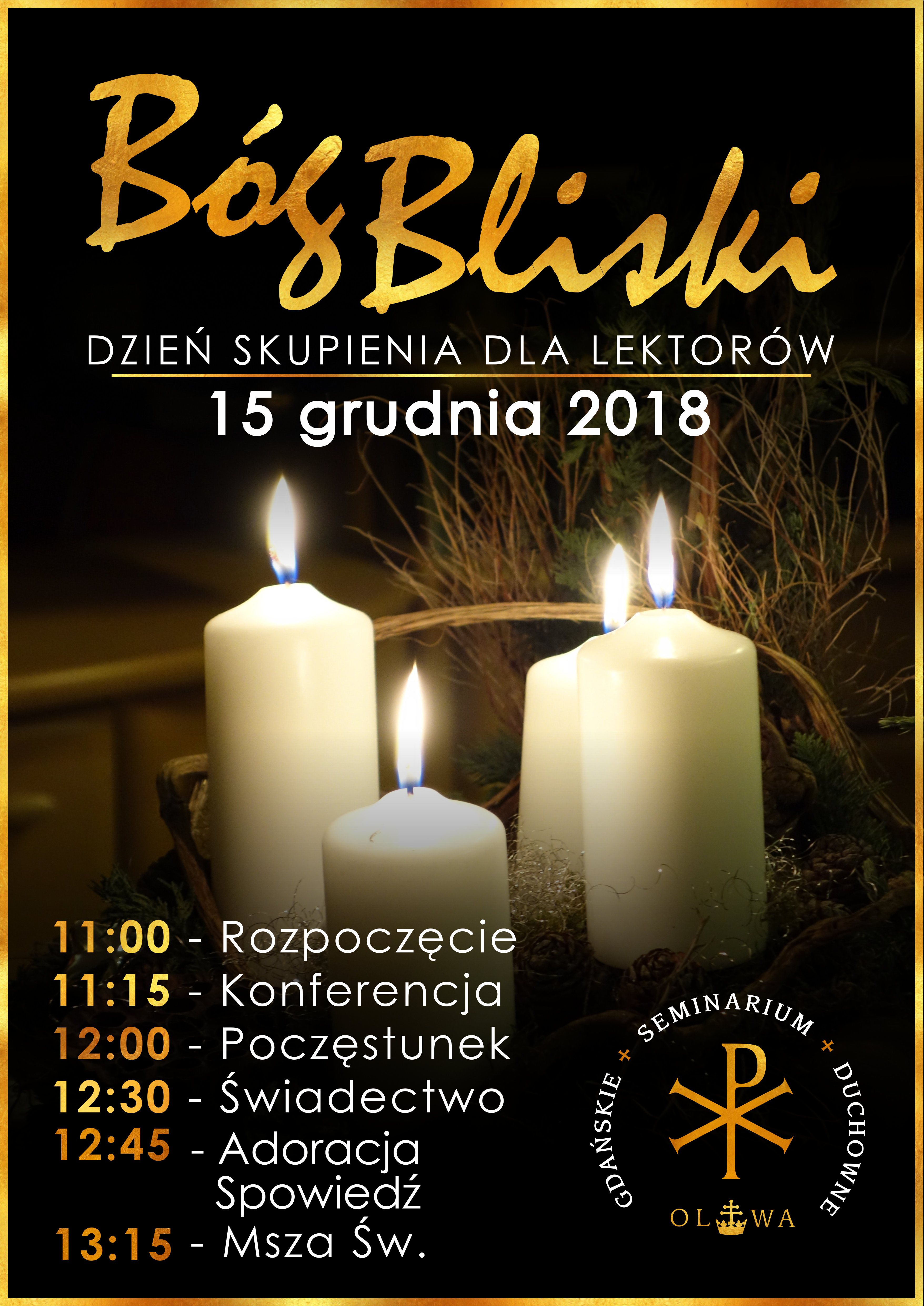 Zapraszam na DZIEŃ SKUPIENIA SŁUŻBY LITURGICZNEJ, który odbędzie się w sobotę 15 grudnia br. w Gdańskim Seminarium Duchownym w Oliwie o godz. 11:00. Temat spotkania to „BÓG BLISKI” – wprowadzający w tajemnicę Eucharystii.